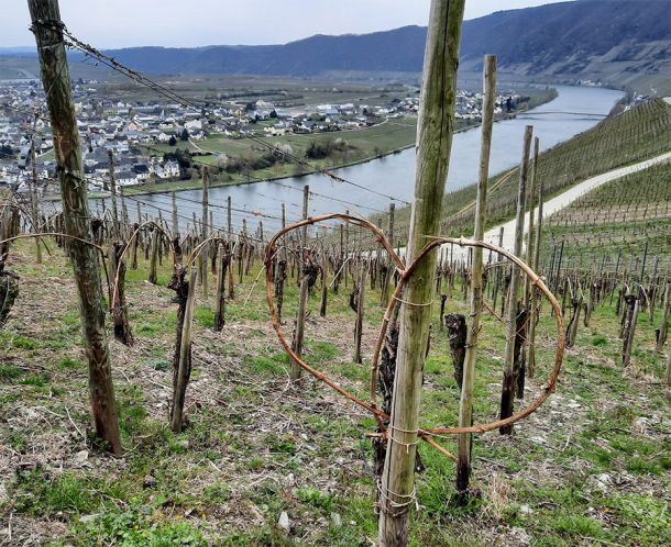 Eine Besonderheit sind die typischen „Moselherzen”, die in Einzelpfahlanlagen noch traditionell gebunden werden.