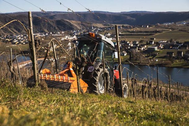 Das beim Rebschnitt entfernte Holz wird zerhäckselt und dient der Rebe als natürlicher Humus im Boden.